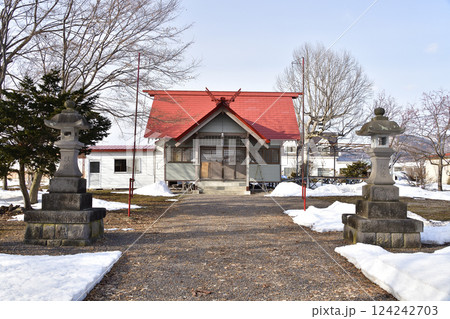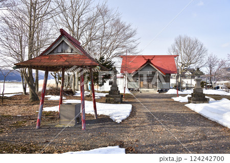早春の北海道七飯町で鶴野稲荷神社境内の風景を撮影