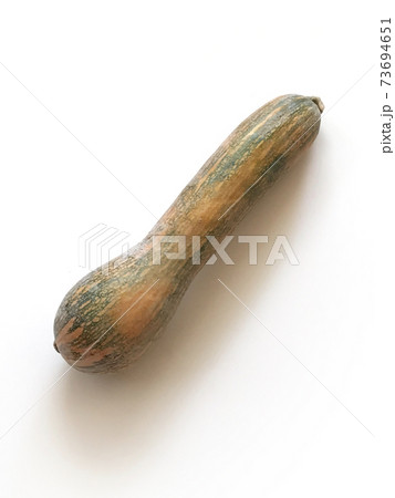 鶴首かぼちゃ(鶴首南瓜・ツルクビカボチャ)の ヘタ側・全体像