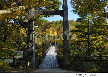 紅葉の荒川峡鷹ノ巣の吊り橋