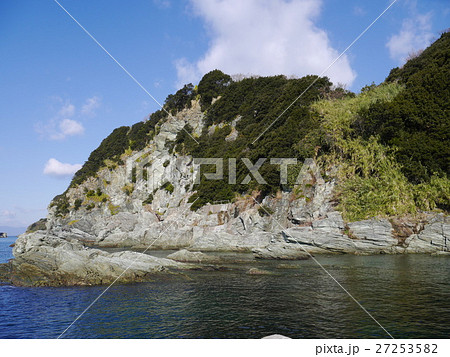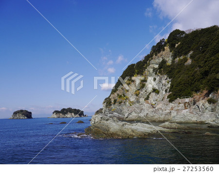 海里より車窓を望む 鷹巣岩 鷹ノ巣岩 屏風岩 村上市板貝 日本海