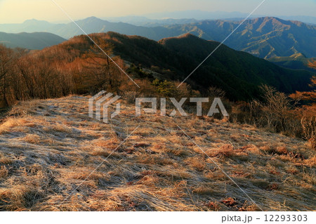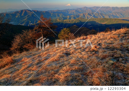 降霜の奥多摩・鷹ノ巣山山頂から朝の奥多摩三山