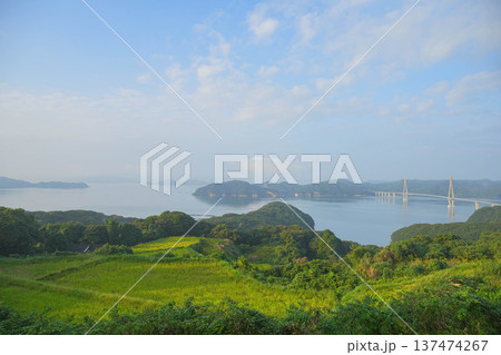 初夏の犬頭の棚田と鷹島肥前大橋 佐賀県唐津市
