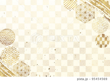 和風背景素材 伝統的な和柄 水玉 金 ベージュ 白