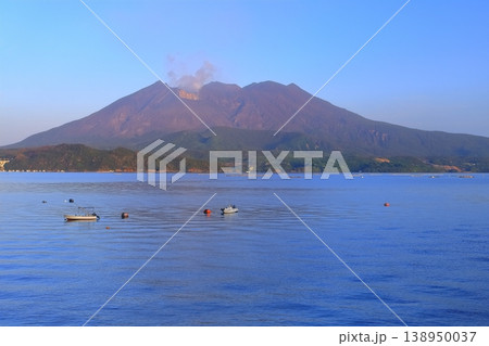 【鹿児島県】道の駅たるみずから見た早朝の(桜島)