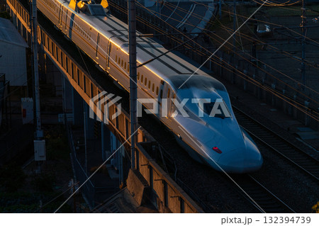 鹿児島中央行き九州新幹線みずほ 冬の夕暮れの宍甘遊園地から見た風景3 岡山県岡山市東区