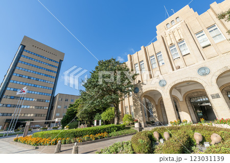 鹿児島県鹿児島市 快晴の鹿児島市庁舎本館と東別館