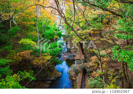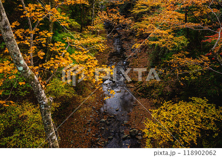 鹿教湯温泉散策道 紅葉橋から渓流の眺め 秋 上田市