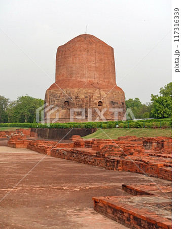 インドのベナレス郊外にある仏教徒の聖地サールナートは仏陀が初めて説法をしたところでダメーク大塔が建つ