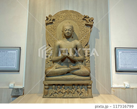 インドのお釈迦様四大聖地の一つサールナートの博物館に展示されるはじめて説法された姿の彫刻初転法輪仏