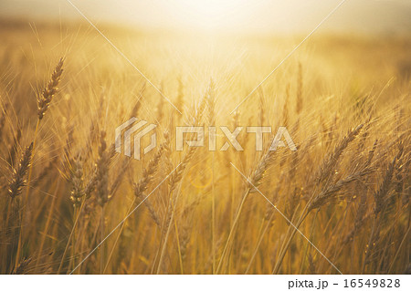 黄金色に輝く初夏の小麦の穂 麦秋