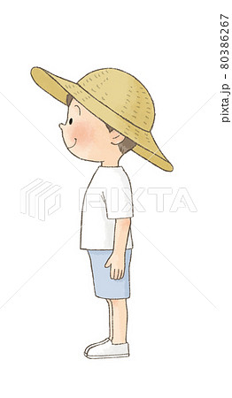麦わら帽子の男の子(全身横向き)