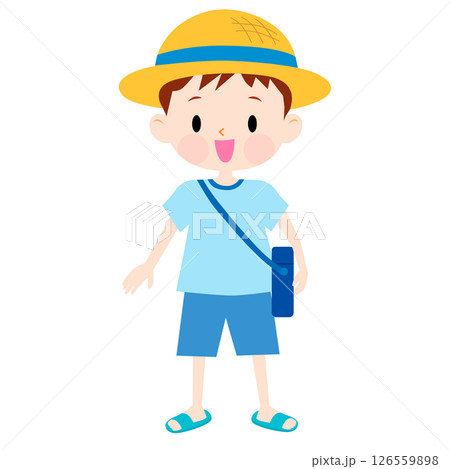夏服を着て麦わら帽子をかぶった男の子のイラスト