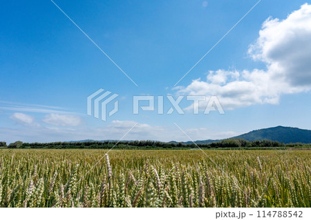 穂が出る前の麦畑富山のある風景