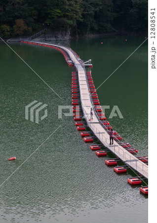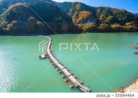 奥多摩湖に架かる麦山浮橋(日本 東京都西多摩郡)