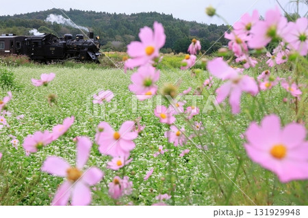 真岡鐵道「蕎麦畑とコスモス咲く風景」