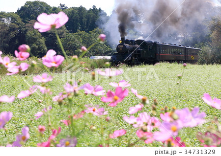 真岡鐵道「コスモスと蕎麦の花咲く風景を走るSL」