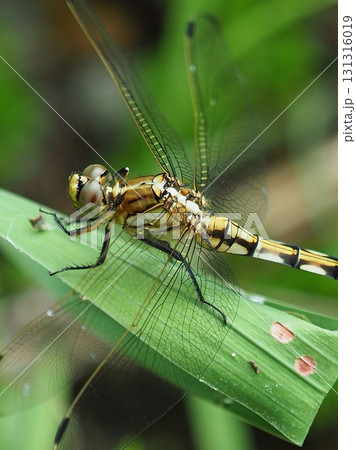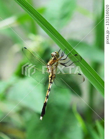昆虫イメージ素材、シオカラトンボのメス、ムギワラトンボ、斜め前から