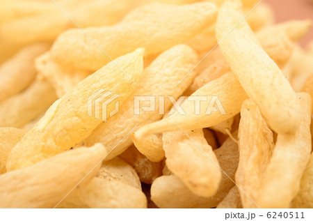 漢方処方用薬・ジャノヒゲの肥大した部分の根の麦門冬(バクモンドウ)・白バック正方形