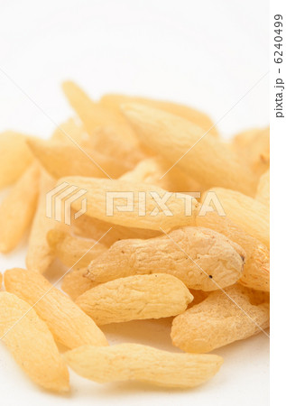 漢方処方用薬・ジャノヒゲの肥大した部分の根の麦門冬(バクモンドウ)・白バック横位置アップ