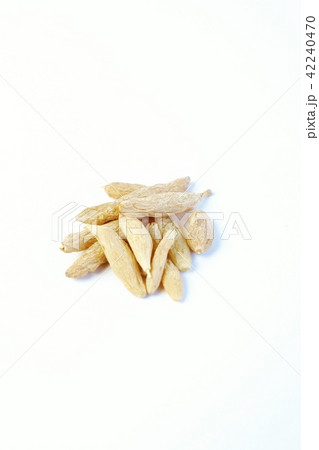 漢方処方用薬・ジャノヒゲの肥大した部分の根の麦門冬(バクモンドウ)・白バック縦位置