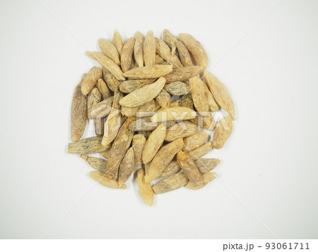 漢方処方用薬・ジャノヒゲの肥大した部分の根の麦門冬(バクモンドウ)・白バック正方形