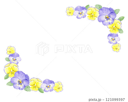 水彩で描いたパンジーのフレーム ライン