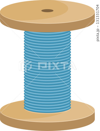 Wooden spool with wound, light blue thread for craft projects, sewing, or textile art.