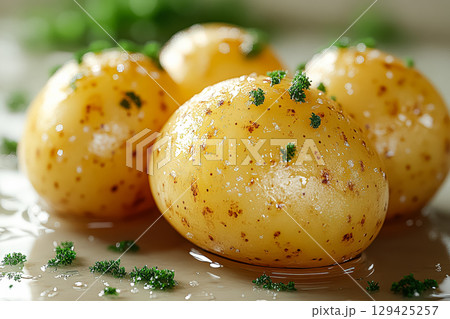 Four small potatoes with parsley on top