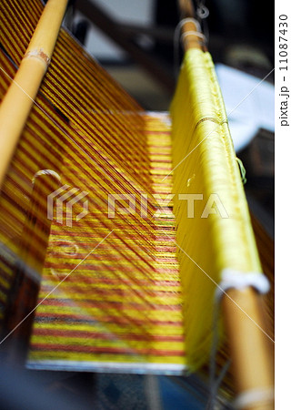 絹織物の木製機織り機