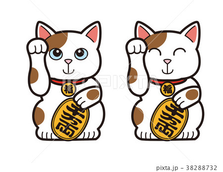 左右の招き猫のイラスト ベクター素材 主線 赤 黄色