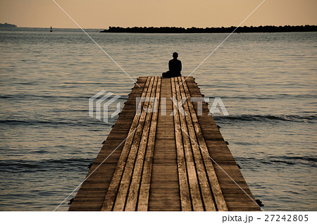桟橋で黄昏れる男性 那古桟橋 千葉県館山市