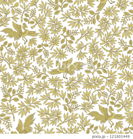 黄櫨染の袍の柄 桐竹鳳凰