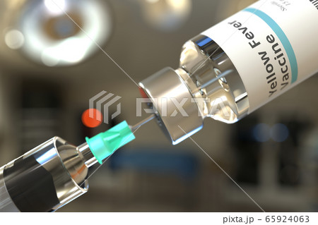 Medical bottle with yellow fever vaccine and syringe, 3D rendering
