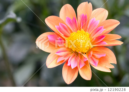 ダリア 素材に使える白バック 横位置 ピンクと黄色 生花で開運