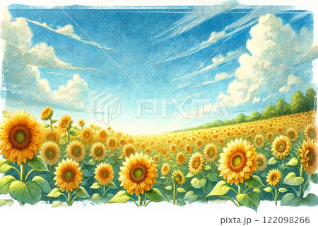 夏 飛行機 空 ひまわり バナー フレーム 背景 イラスト素材