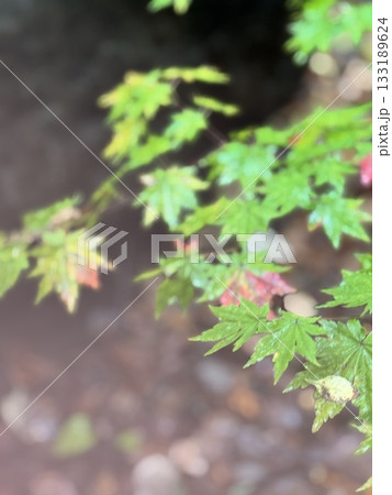 雨に濡れる紅葉し始めたモミジの葉