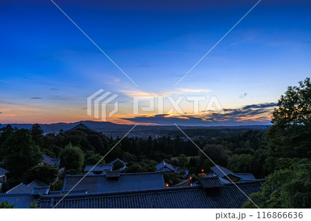 2024年夏奈良東大寺二月堂の夕景 次第に暮れていく西の空 黄金色から紺色までの美しい夕焼け空⑬