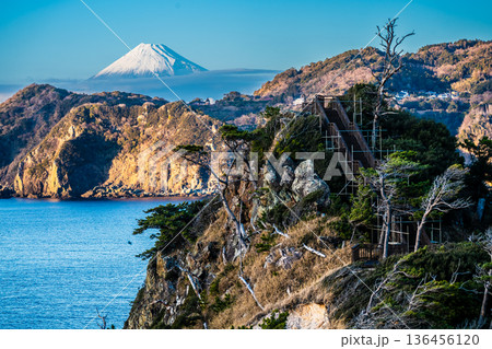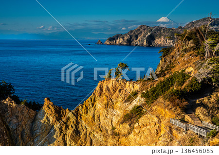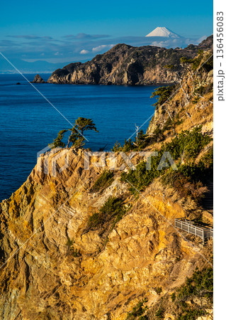 (静岡県)早春の西伊豆黄金崎 富士山遠望