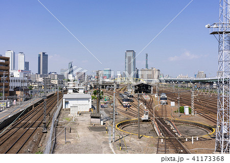 名古屋市中村区 黄金跨線橋からJR東海名古屋車両区 鉄道操車場と名古屋駅前高層ビル群を望む