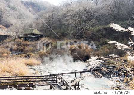 秋田県乳頭温泉郷最奥の黒湯温泉ブナ林に囲まれた静寂の源泉地帯山の湯茅葺屋根の温もりが残る湯治場