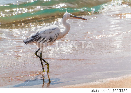 White Western Reef Heron (Egretta gularis) at Sharm el-Sheikh beach, Sinai, Egypt