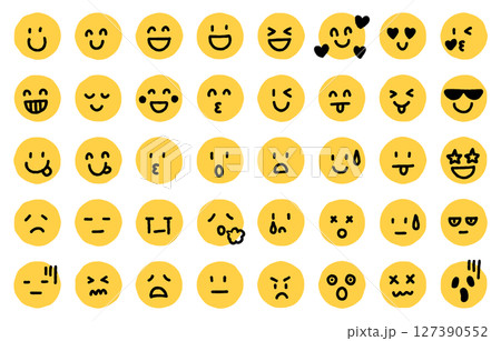 さまざまな表情の手書きのかわいい絵文字・顔文字 輪郭なし 黒
