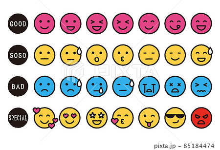 シンプルでカラフルな手描き風感情表現フェイスアイコンセット