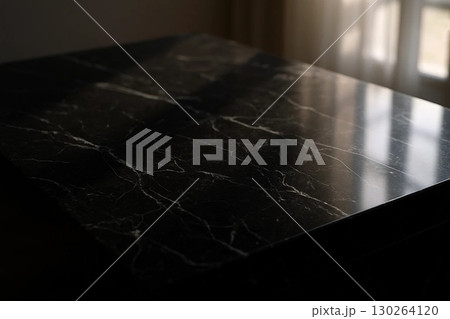 Sophisticated Black Granite Tabletop with Natural Stone Patterns in Morning Light