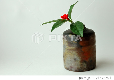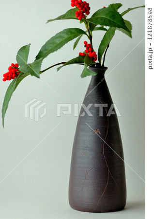 実千両と備前焼の一輪挿し