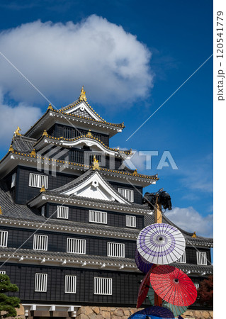 岡山城天守(外観復元)と和傘