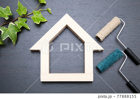 住宅の外壁塗装工事イメージ(住宅と塗装ローラー)
