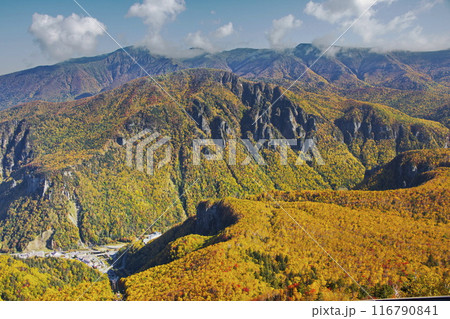燃える秋、錦秋の北海道、十月、層雲峡の紅葉を、黒岳を眺めながらの三国峠へ