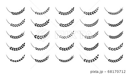 Set of wheat wreaths and grain spikes. Illustrations and pictograms. Black and white vector clipart and drawings.