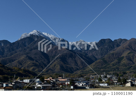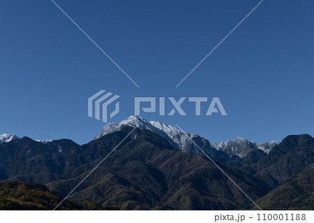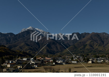 麓の街白州町から見る晩秋の南アルプス甲斐駒ケ岳